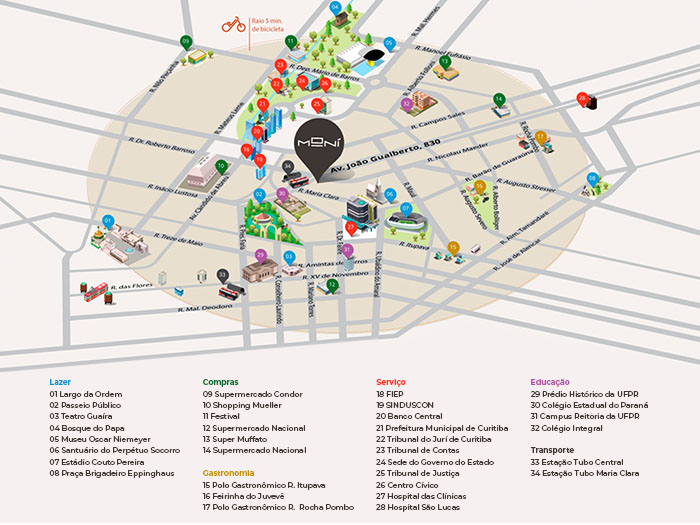 O Moní, lançamento da AGL na Avenida João Gualberto, está localizado em uma das áreas mais completas e bem conectadas do Alto da Glória. Com walk score 98 e classificação Walker’s Paradise, o morador vive na prática o conceito de estar perto do que realmente importa.